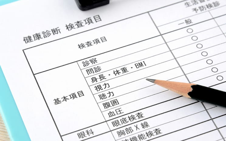 健康診断に際しては、まず最初に問診票を記入します。そこで申告するのは、自覚症状、現在の病名、服用している薬、既往歴、家族の既往歴、アレルギー、生活習慣(喫煙・飲酒・食事・運動習慣、睡眠の状況、ほか)などです。
